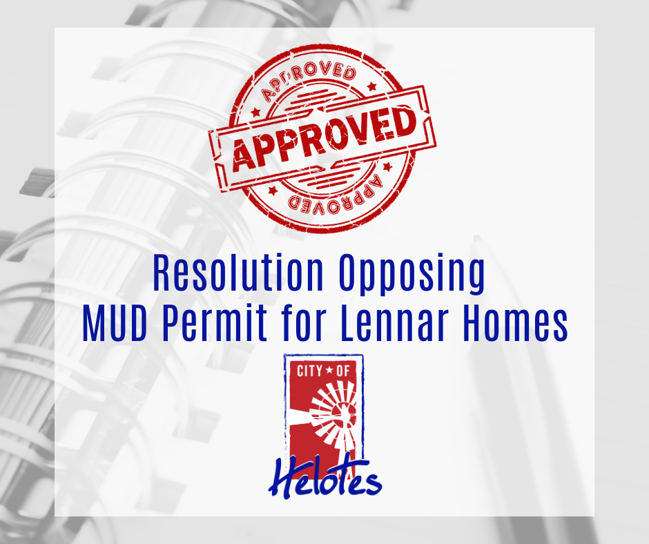 Last night, the Helotes City Council unanimously approved the Resolution that Jen Sones, Helotes City Council Place 2, and I submitted opposing the proposed MUD permit tied to Lennar Homes’ Guajolote Ranch development.